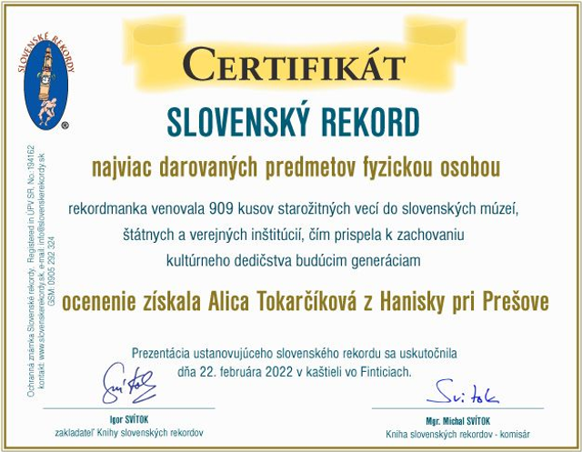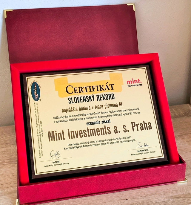 Na plakete je vytlačený plnofarebný certifikát, rozmer plakety 255x200 mm.